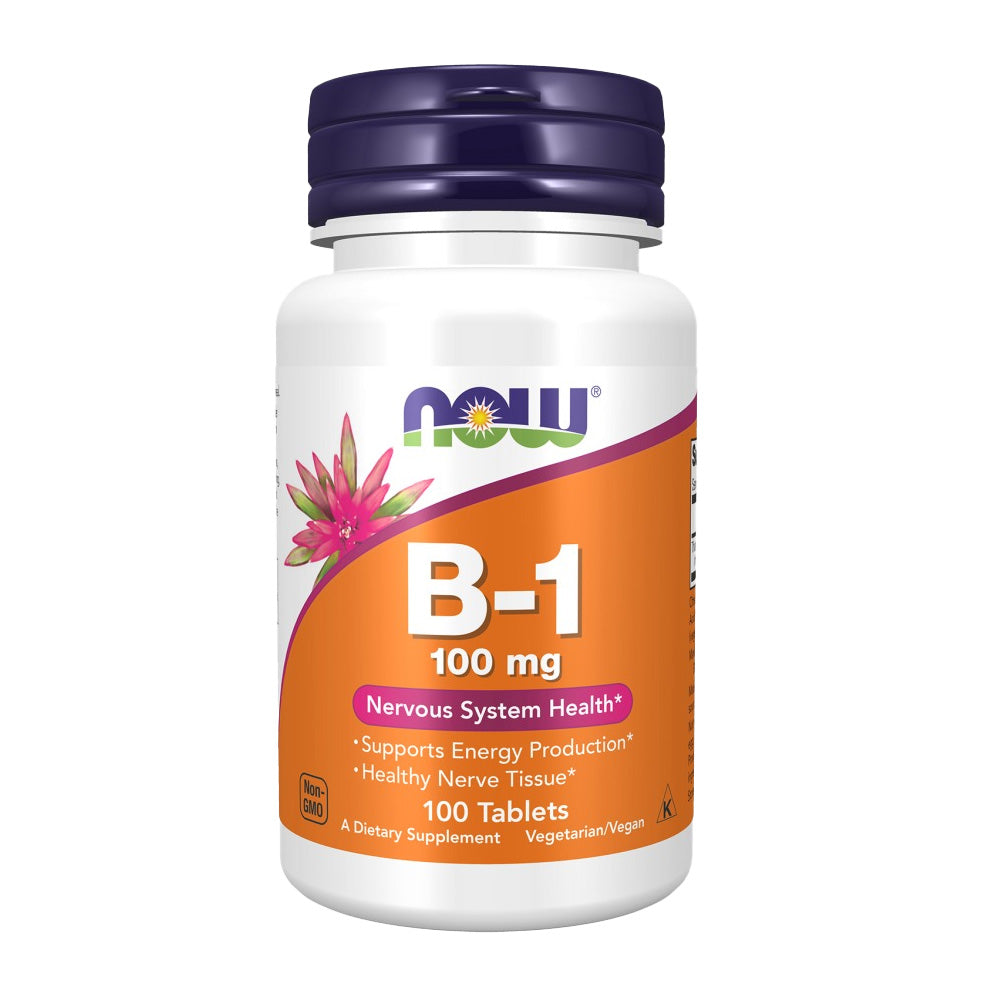 Vitamin B-1 (Thiamin) is an essential B-Vitamin found naturally in foods such as cereal grains, beans, nuts, eggs, and meats. It plays a crucial role in various bodily functions, including supporting the nervous system and muscle function, regulating electrolyte flow in and out of nerve and muscle cells, facilitating carbohydrate metabolism, and aiding in the production of hydrochloric acid for proper digestion. NOW’s B-1 100mg is formulated to be suitable for everyone, being vegetarian, vegan, and Non-GMO.